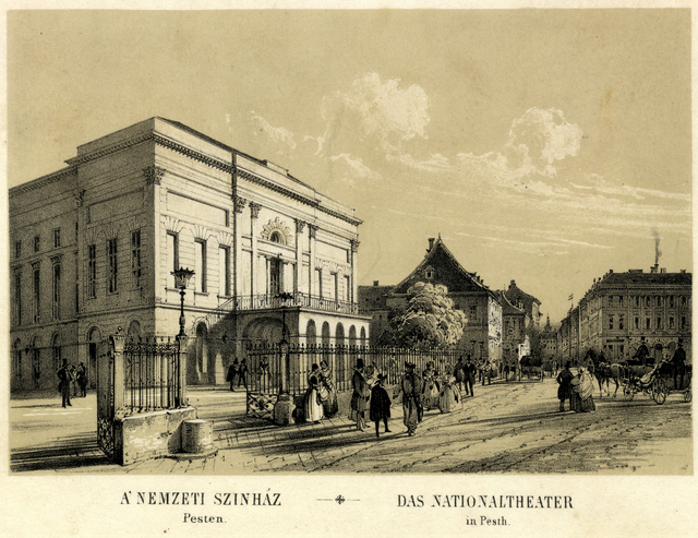 A Várban elért siker az eddigieknél is jobban felvillanyozta a tömeget, amely – immár Táncsiccsal együtt – a Nemzeti Színházhoz vonult, amely a mai Astoria kereszteződésnél állt (a modern irodaház, az East-West Business Center helyén). Az eredeti műsorrendet megváltoztatták: a Bánk bán került színpadra, ám az előadás néhány jelenet után félbeszakadt. A Várból érkező tömeg bevonult a színházba, „minden padok megtelnek; a’ fuladásig nyomott népnek páholytulajdonosok nyújtanak le kezet, ’s emelik fel magokhoz” – ahogy a Pesti Hírlap írja. Majd a tudósítás szerint Egressy Gábor feltette a kérdést: a darabot akarják-e folytatni, vagy Petőfi költeményének elszavalását, népdalok éneklését, és Hunyadi László „jelesebb áriáit” akarják-e hallani? Közfelkiáltást kísérte az utóbbi indítványt, majd elénekelték a Himnuszt és a Szózatot is.