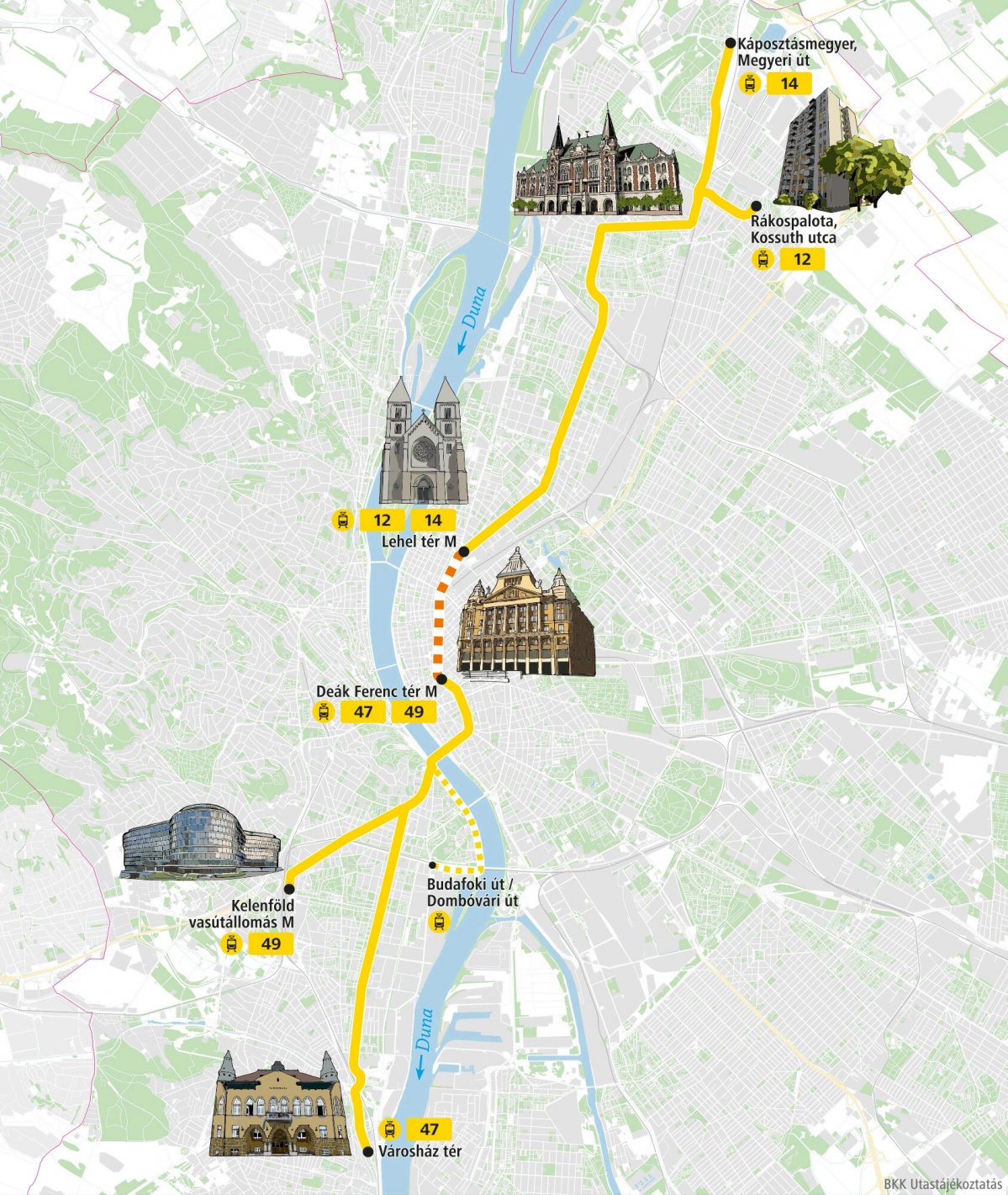 A pesti fonódó villamos tervezett útvonala (Fotó: bkk.hu)
