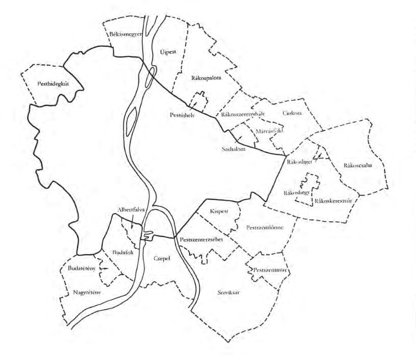 Budapest új kerületei (Forrás: Gergely Gábor: Budapest kerületeinek közigazgatási változásai, OSZK)