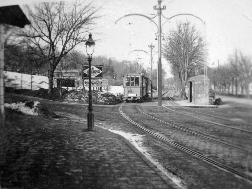A 83-as 1930-ban a Kútvölgyi lejtőnél robog a mai Szilágyi Erzsébet fasoron (Forrás)