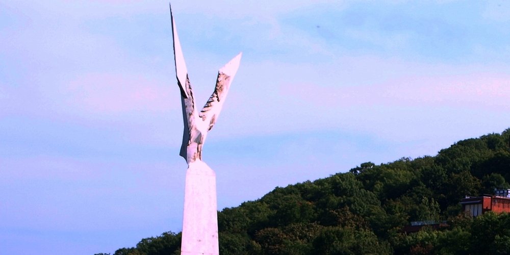 Állunk hát a csodálatos őszi fényben e szobor tövében, mindezek tudatában, és mégis nehezen értelmezhető az egész látvány. 1996-ban a turul még nem volt olyan sokféle jelentéssel terhelt, mint amilyenné mára lett, de azt azért így is kijelenthetjük, hogy ez a szimbólum nehezen kapcsolható '56-hoz. Ha általánosságban véve a szabadság madarának látjuk, már könnyebb a helyzetünk, de innen lentről még angyalként is értelmezhető a figura. Az obeliszk mint forma kicsit áthallásos, hisz a legtöbb szovjet hősi emlékmű így jelent meg a magyar köztereken.