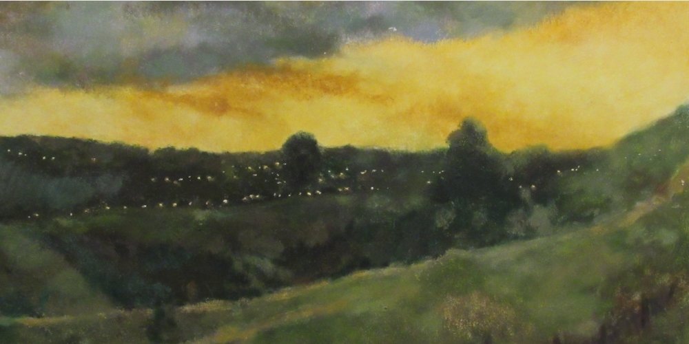 Az esti hangulat csendes, megbékélő világa több képén is visszatér. Az emberi elmúlás tárgyi emlékeit láthatjuk a Menasági temető című festményén. A kidőlő síremlékek, a kerítés és a kereszt az elmúlás csöndes bizonyságának a tanúi. Az ég sárga színe szinte ikonikus hangulatot áraszt az örökkévaló változatlanság tanújaként.