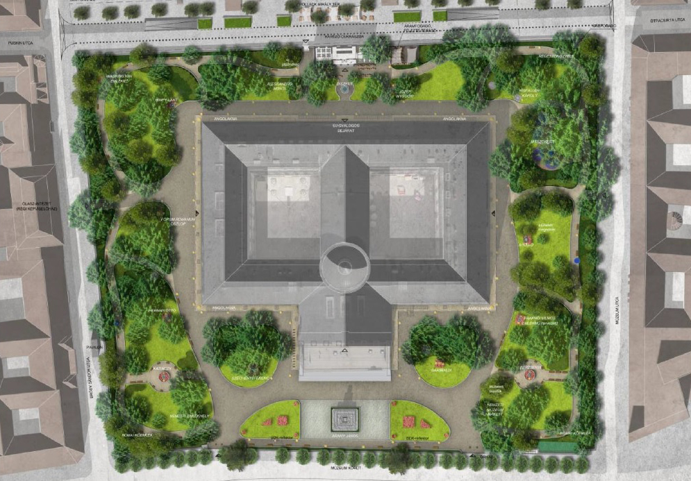 Több fa, rendezett sétányok: az új kert terve (Forrás: MNM)
