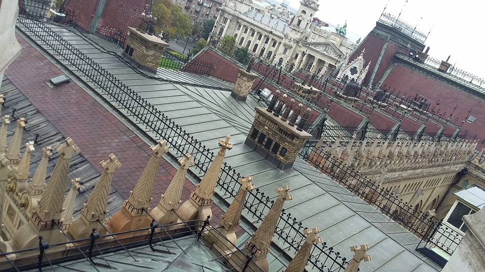 A parlament kupolája (a Szent Koronát is őrző kupolacsarnok fölötti üres térség) pedig így néz ki belülről. Igen, azon a függő lépcsőn lehet fölmenni a kupola legtetejébe.