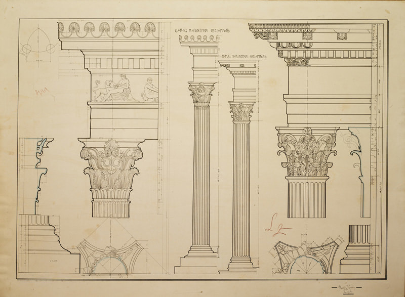 Oszlopelemek, építészeti rajz, XX. század eleje