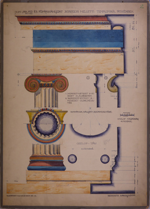 Jón láb-, fej- és főpárkányzat az Ilisszos melletti templomról Athénban, Berkovits Károly, építészeti rajz, 1921