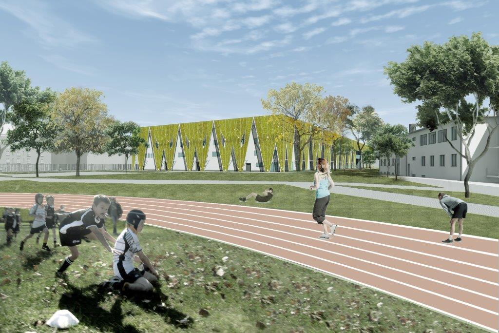 Sportközpont és futópálya (Forrás: Nemzeti Közszolgálati Egyetem, Ludovika Campus, látványtervek)