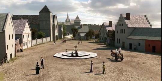 A polgárváros – részlet a budai várat bemutató 3D rekonstrukcióból, a videót lásd alább: