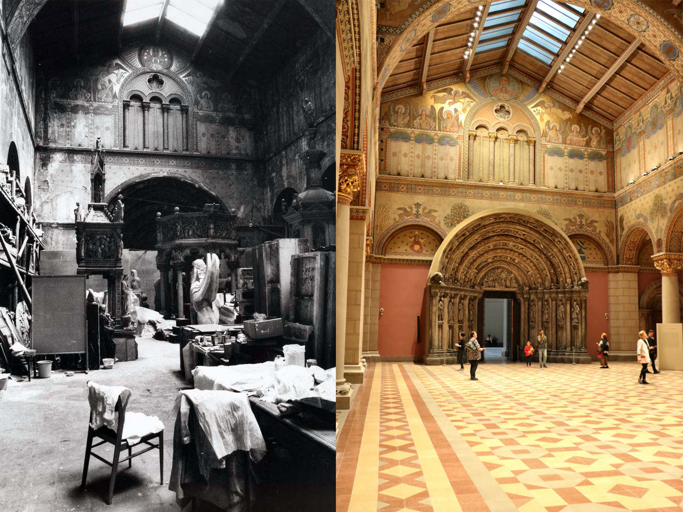 Nyitókép: A freiburgi katedrális főkapujának másola a Román Csarnokban (MTI)