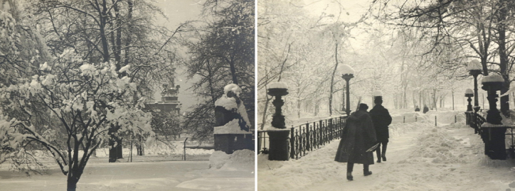 Bár az egykor oly népszerű postai képes levelezőlapok többsége a zöldellő nyári parkot és a napfényben úszó szobrokat ábrázolta, annak idején divatja volt a téli fővárost ábrázoló képes levelezőlapoknak is. Téli képeslap esetén elengedhetetlen kelléke volt a fotónak az épületeket, szobrokat befedő, vastag, romantikus hóbunda.