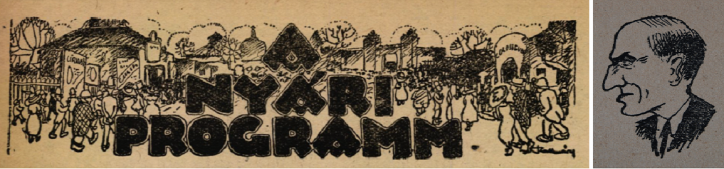 A Színházi Élet 1921-es riportjának fejléce a Városliget jellegzetes szórakoztató intézményeivel (balra), jobbra Feld Mátyásról készült rajz a visszaemlékezéseit tartalmazó kötetből (4)