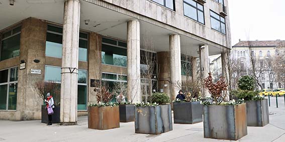 A megüresedett helyre ideiglenesen dézsás növényeket helyeztek ki (Fotó: masodikkerulet.hu)