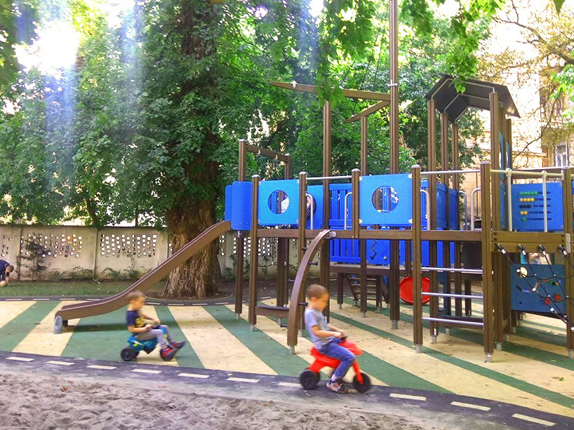 Az épület melletti új játszóudvart birtokba vették az óvodások (Fotó: pestbuda.hu)