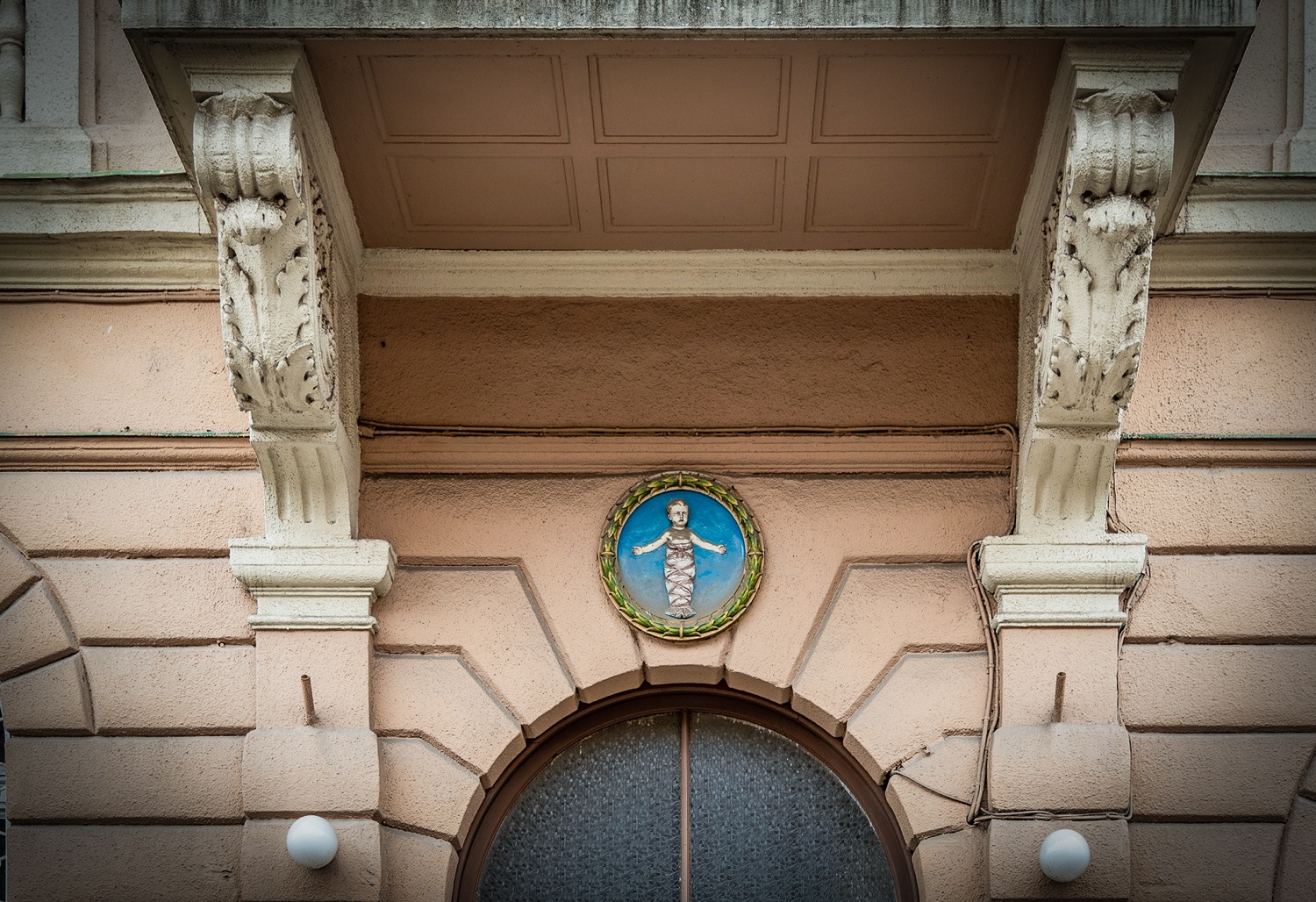 A Tűzoltó utca 7. szám alatti tondó a boltív fölött (Fotó: Both Balázs/pestbuda.hu)