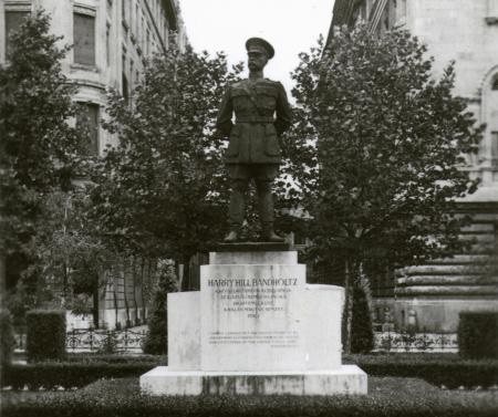 Harry Hill Bandholtz tábornok szobra a Szabadság téren 1938-ban. A szobrot Ligeti Miklós készítette 1936-ban (Fotó: Fortepan)