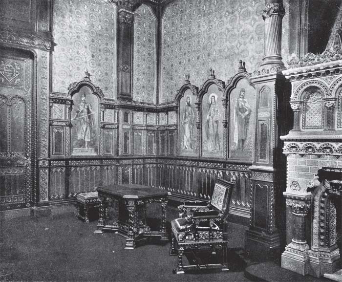 A Szent István terem művészi famunkáit (bútorok és a kandalló) Thék gyárának köszönhetjük. A kép 1912-ben készült (Fotó: FSZEK Budapest Gyűjtemény).