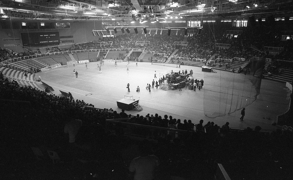 Budapest Sportcsarnok, tévéműsor felvétele az átadáskor, 1982. február 12-én (Fotó: Fortepan/Urbán Tamás)