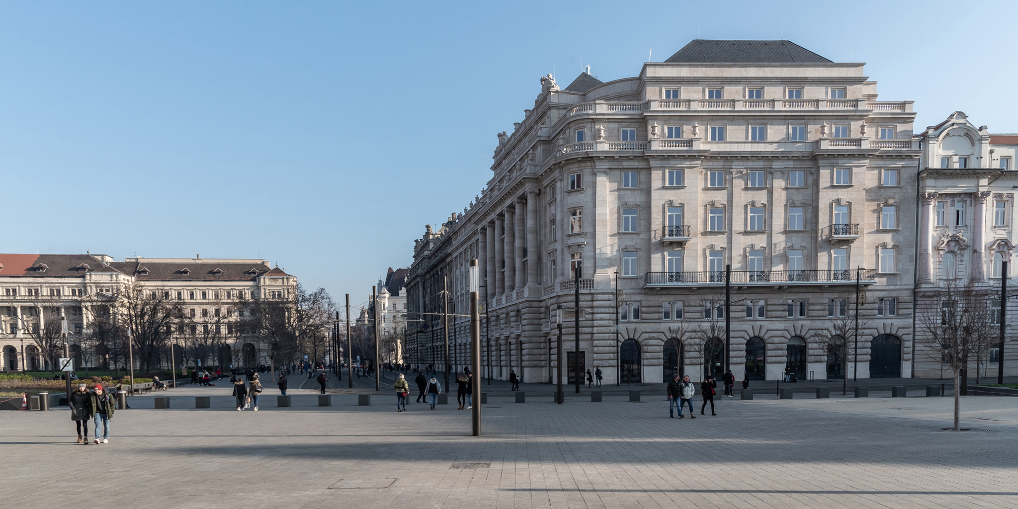 A Kossuth tér északi oldalának beépítése meg is történt, ám a déli oldal, ahol most mi is járunk, foghíjas maradt. Arra a telekre, ahol ma a Szabad György Irodaház található, korábban pedig a MTESZ székháza állt, sokáig nem épült semmiféle ház.