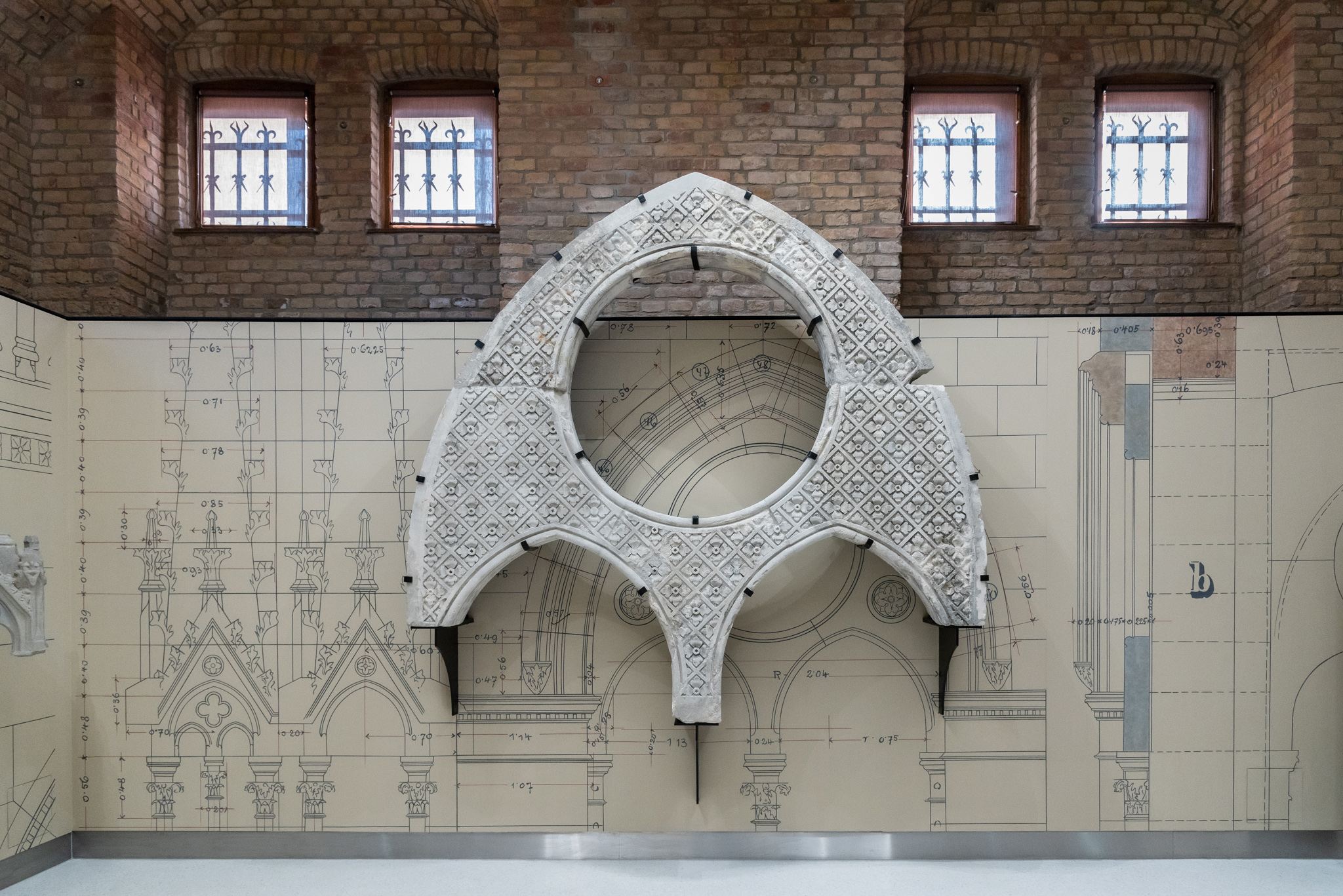Másolat az Országház díszítőelemeiből a fogadótér falán (Fotó: Both Balázs/pestbuda.hu)