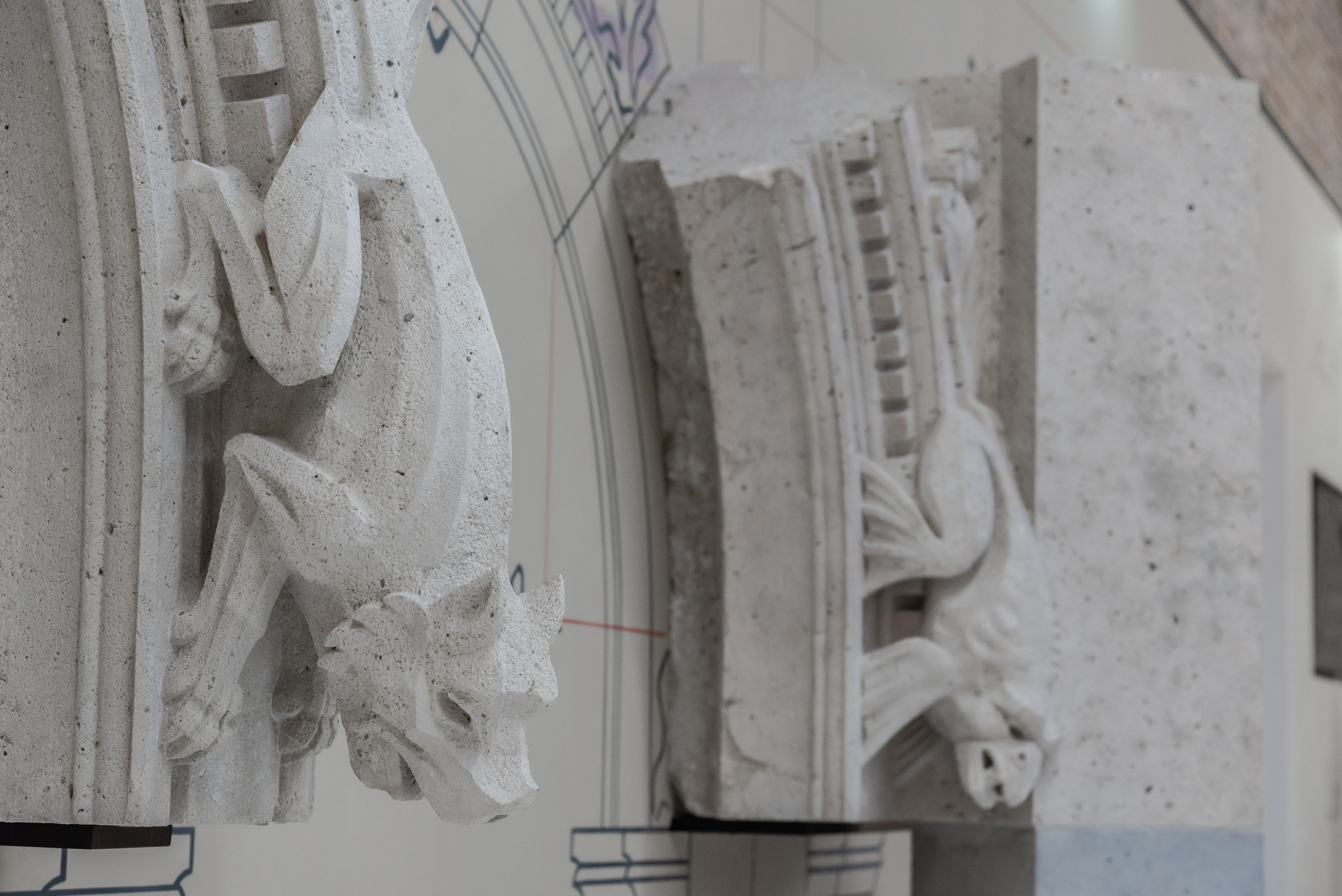A korábbi MTESZ-székházból megőrzött oszlop (Fotó: Both Balázs/pestbuda.hu)