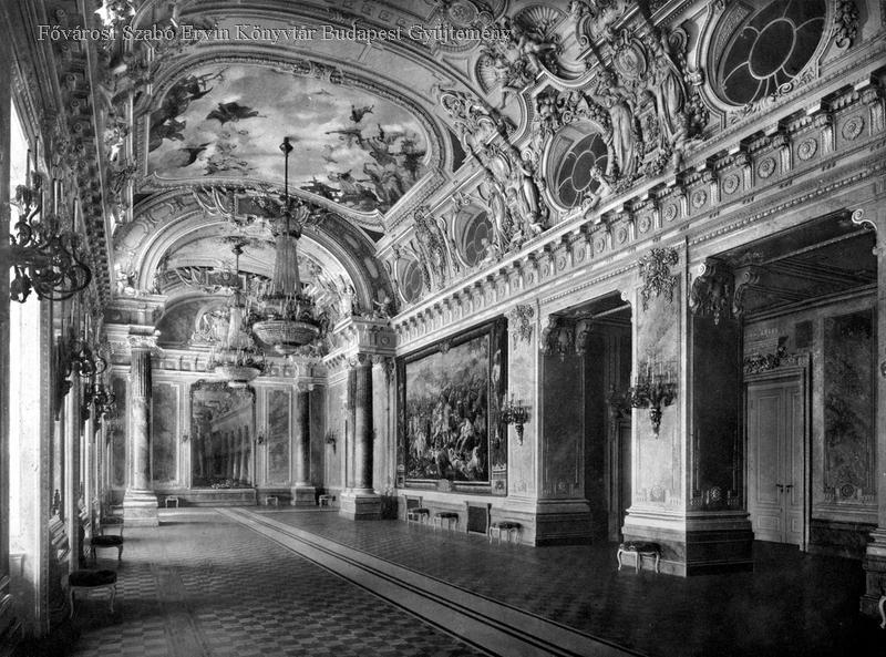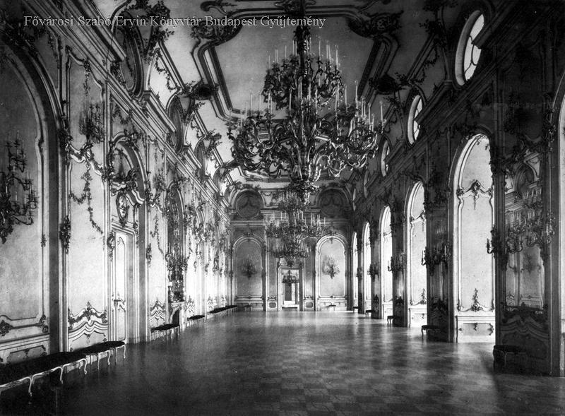 A Mária Terézia-féle palotaszárnyban található régi díszterem átalakítva, bővítve 1912-ben (Fotó: FSZEK Budapest-képarchívum)