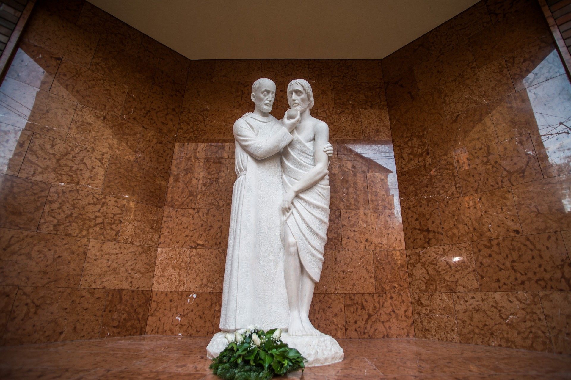 A Betegápoló Irgalmasrendet alapító, portugál származású Istenes Szent János szobrát Rieger Tibor szobrászművész készítette (Fotó: MTI/Balogh Zoltán)