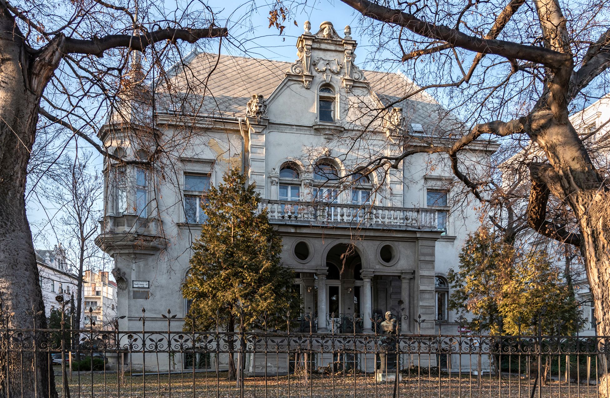 A villa virágmotívumokkal díszített kovácsoltvas kerítése (Fotó: Both Balázs/pestbuda.hu)