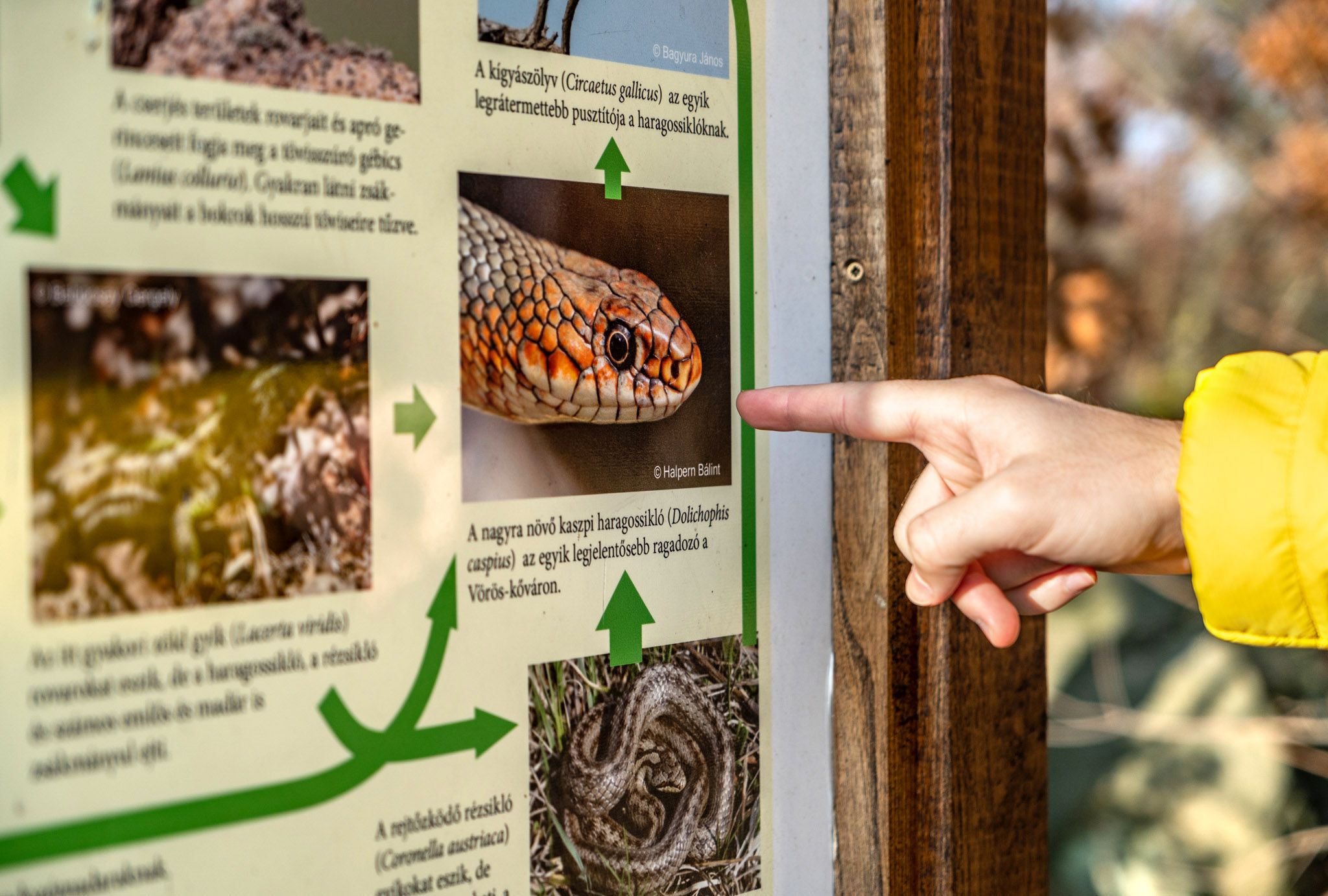 A terület fő attrakciója a már említett kaszpi haragossikló. Nevét onnan kapta, hogy viszonylag alacsonyan van az ingerküszöbe, hamar harap. Mérge azonban nincs, az emberekre teljességgel veszélytelen, harapása inkább kellemetlen. A kaszpi haragossikló a mai Magyarország legnagyobb testű siklója. Hossza ritkán a két métert is elérheti. Színe nem üt el jelentősen a többi hazai siklófajunkétól, barnás alapszínében a fehér torok, a szürkés nyak feltűnő, amely szín az oldalán is jellemző. Különlegessége inkább a pikkelyek közepén lévő narancsos színű árnyalat, és ezért a farok felé mintha csíkos lenne. Feje sötétebb, barnább, pupillája kerek, míg a hasa egészen világossárgás árnyalatokban mutatkozik. Ragadozó, megeszi a nála kisebb testű rágcsálókat, de akár a rézsiklóra is rátámad.