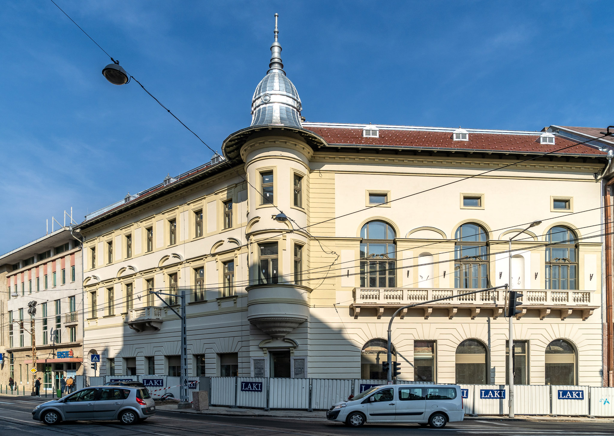 A Vécsey utcai épület az elsők között kaphatja vissza most még hiányzó kupolaszerű manzárdtetőzetét (Fotó: Both Balázs/pestbuda.hu)
