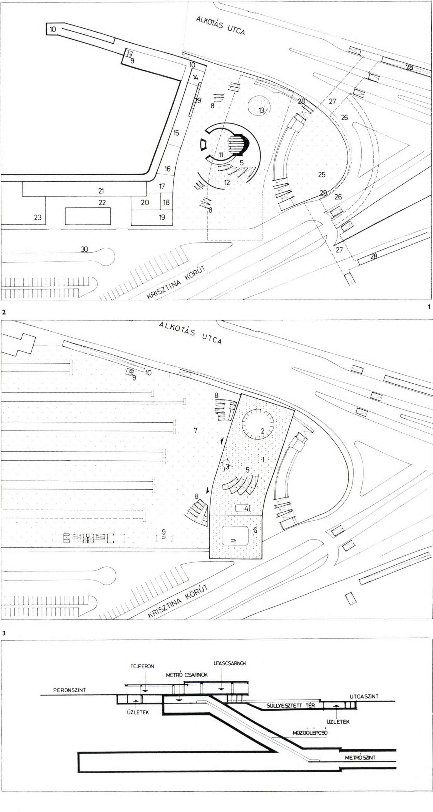 A Déli pályaudvar, alaprajz és keresztmetszet, a képen jól látható a metró alagútja is (Forrás: Magyar Építőművészet, 1978. 3. szám)