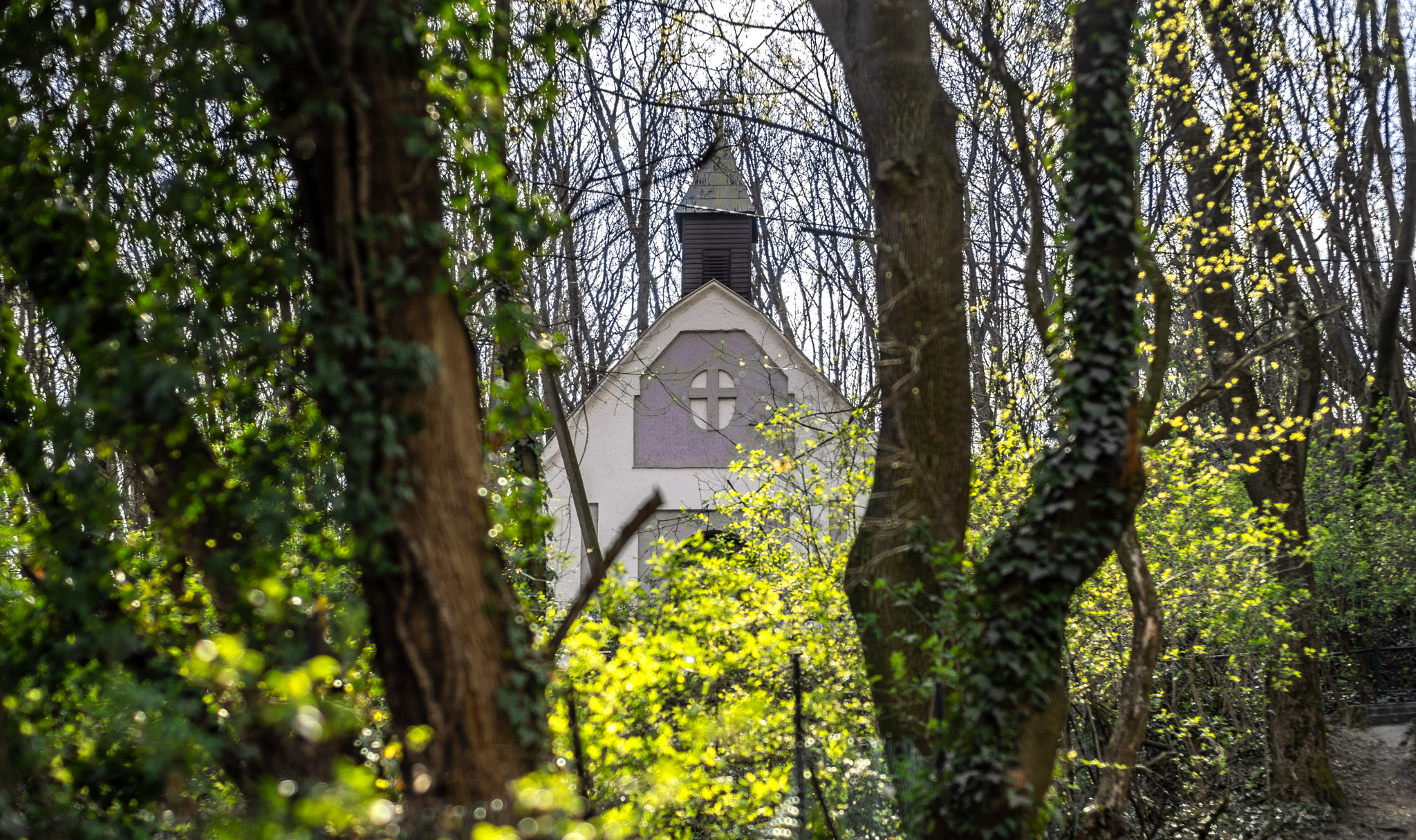 A felújított Szent Vér-kápolna a fák között napjainkban (Fotó: Both Balázs/pestbuda.hu)