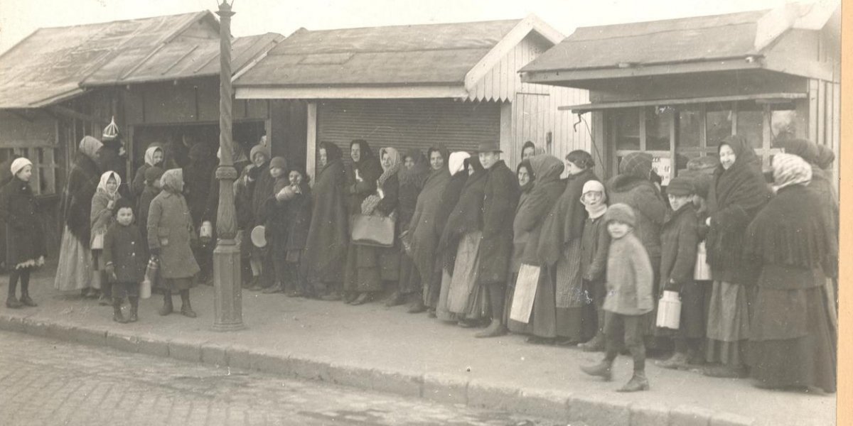 Nyitókép: Sorban állók a Teleki téren 1918-ban (Forrás: FSZEK Budapest Gyűjtemény)