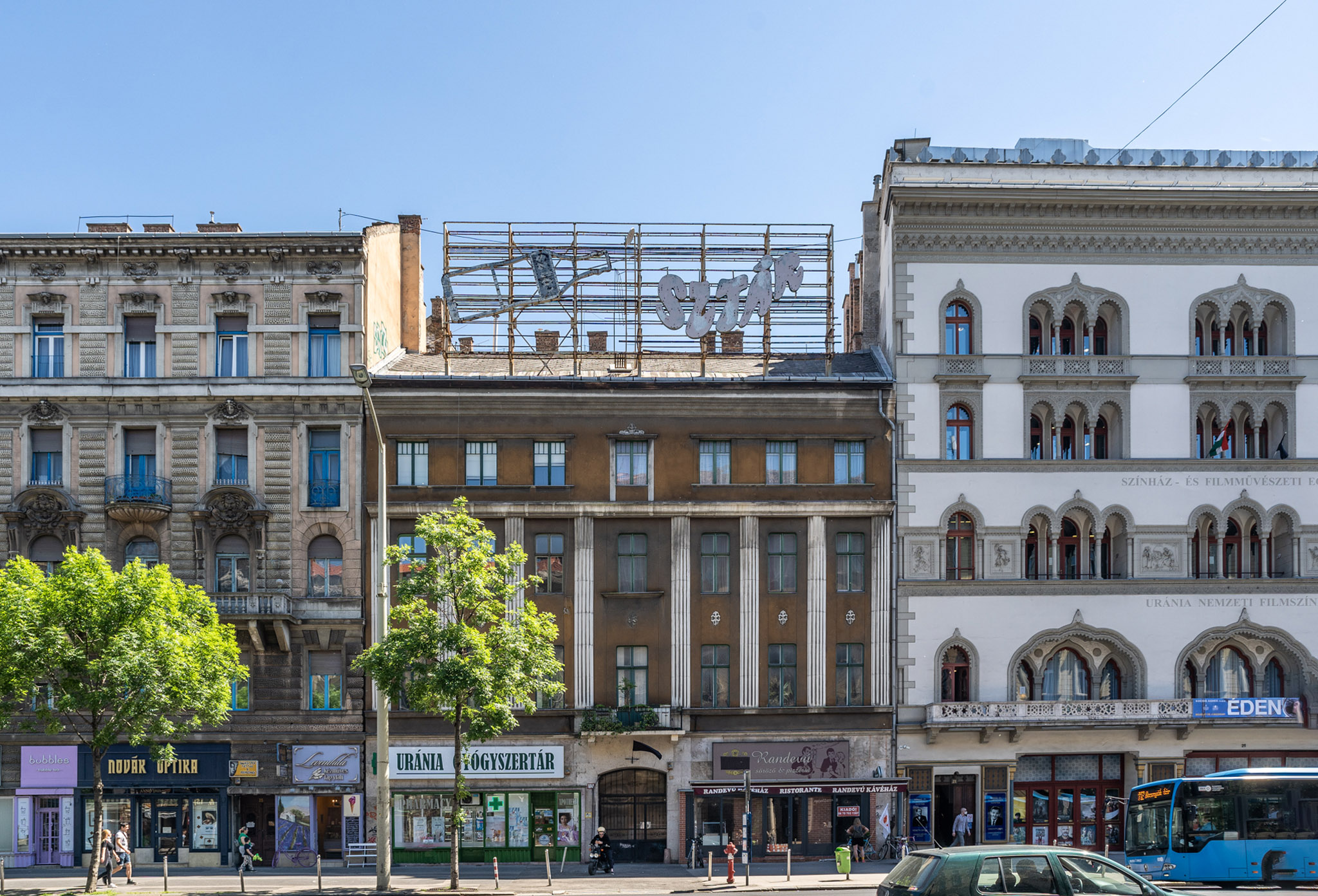 Ha innen az Uránia felé tekintünk, a mozi mellett álló 23. számú ház tetején igazi, klasszikus neonfelirat maradványát pillanthatjuk meg. A „Sztár” felirat és a mellette lévő megdöntött üvegpalack semmi kétséget nem hagy afelől, hogy az 1969-ben bevezetett Sztár üdítőital itt ragadt reklámját láthatjuk. A Szeszipari Országos Vállalat által eredetileg három ízben (cola, citrom és narancs) gyártott ital alapanyagát a korabeli lapok beszámolói szerint a holland Naarden cég szállította, a Sztár így egy korty nyugatot jelentett a szocialista blokk számára, a rendszerváltást követően azonban lassan kikopott a piacról, hirdetése azonban máig dacol az idővel.