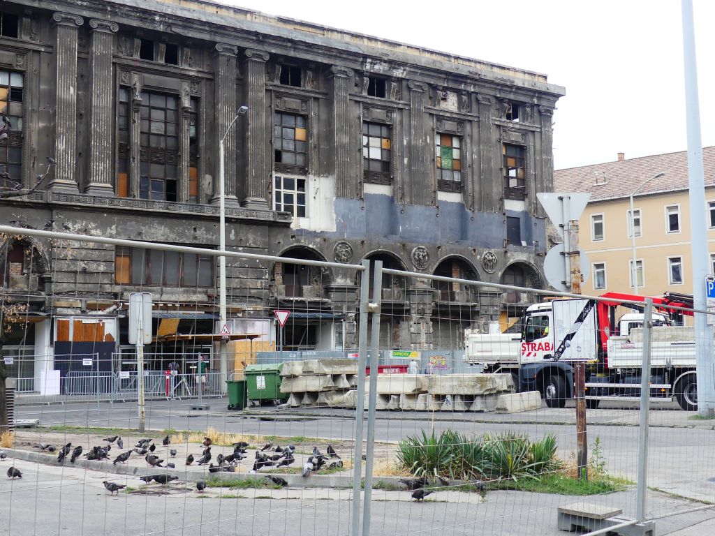 A felújítással egy időben a Corvin Áruház tulajdonosa magánberuházásban átalakítja az épületet, műemlék homlokzatát pedig részben állami támogatással felújítja (Fotó: pestbuda.hu)