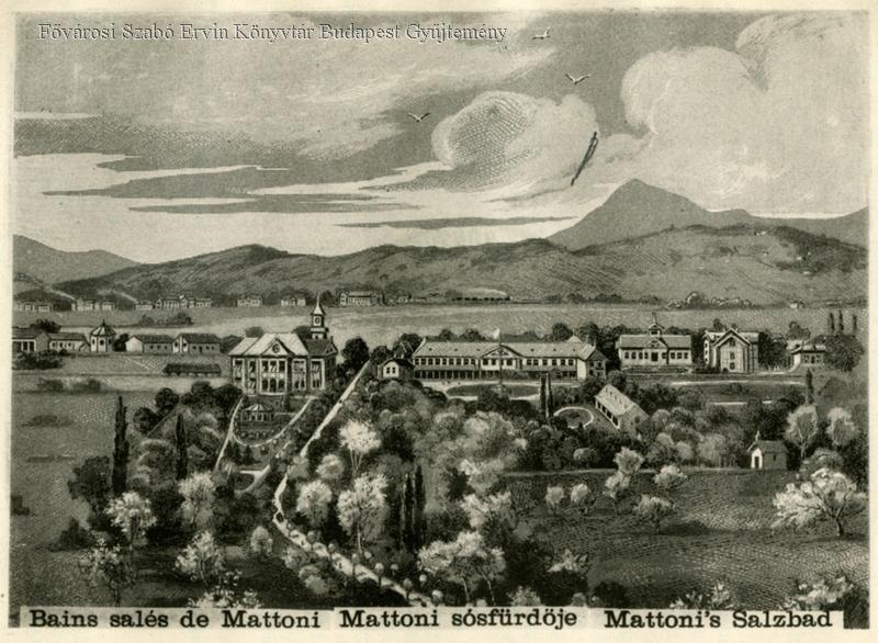 A Mattoni-féle Erzsébet sósfürdő egy 1890-ben készült metszeten (Forrás: FSZEK Budapest Gyűjtemény)