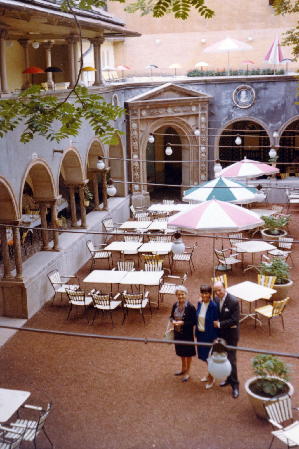 Az árkádokkal körülvett reneszánsz hatású kertet az 1920-as évek első felében végzett átalakítás során építették Bálint Zoltán és Jámbor Lajos építészek tervei szerint (Forrás: FSZEK Budapest Gyűjtemény)