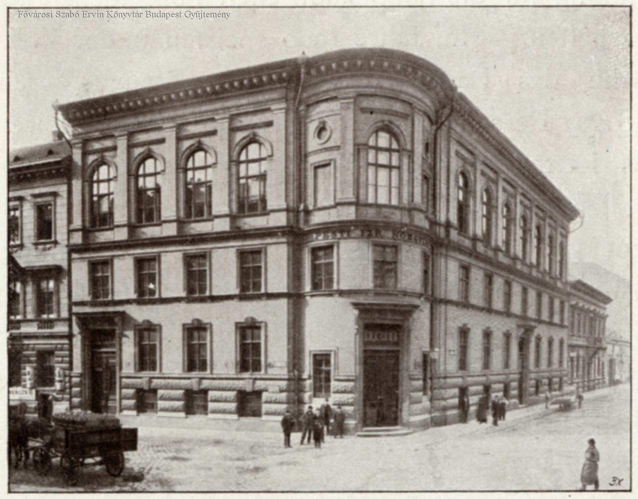 A Dob utca, Kertész utca sarkán álló épület földszintjét és első emeletét 1901-ben bérelte ki a Fészek Klub. A ház, amely Freund Vilmos tervei szerint épült, eredetileg a Pesti Izraelita Nőegylet árvaháza volt (Forrás: FSZEK Budapest Gyűjtemény)