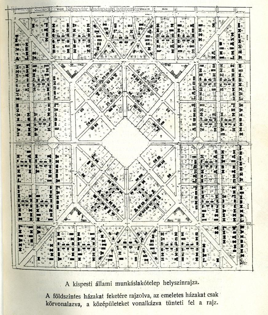 A kispesti állami munkáslakótelep, azaz a Wekerletelep helyszínrajza (Forrás: FSZEK Budapest Gyűjtemény)