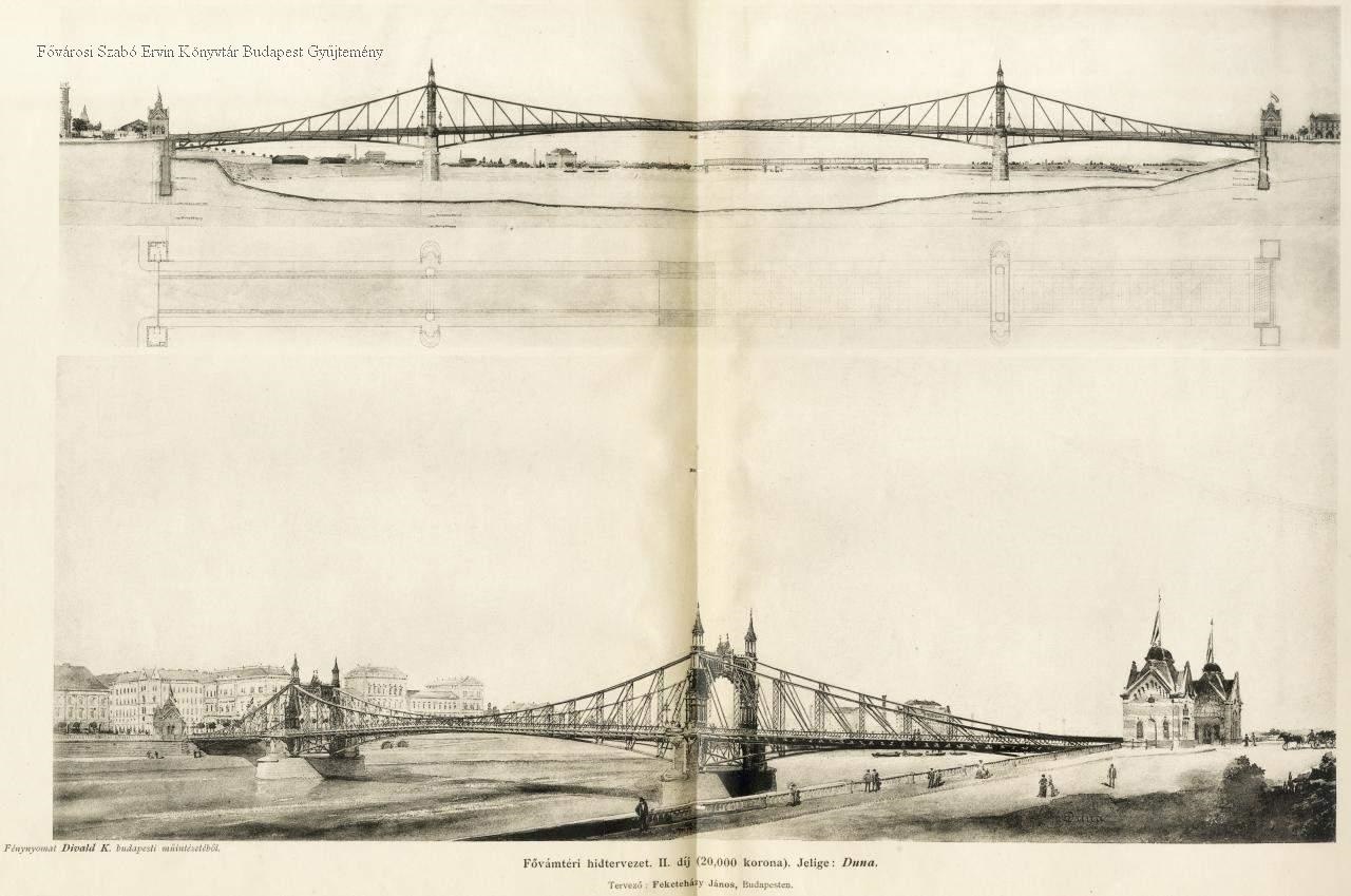 A hídra az Eskü térivel együtt írtak ki nemzetközi pályázatot. A Vámház térre 21 pályázat érkezett, a nyertes tervet Feketeházy János, a MÁV nyugalomba vonult mérnöke adta be. Mivel a két hídra közös pályázat volt, Feketeházy terve valójában az egész eljárást tekintve a második helyezett lett, az első díjat egy, az Eskü térre érkezett elképzelés kapta, ám a német mérnök terve végül nem épült meg, míg Feketeházy Vámház téri hídja igen.