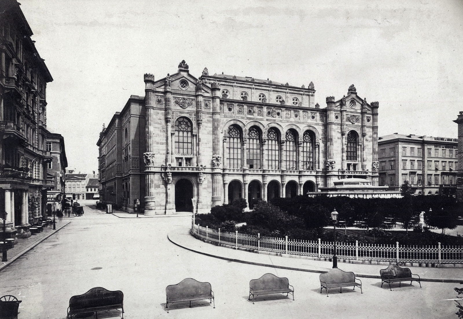 Lechner és Feszl a Duna-partnak más funkciót szánt, Lechner nem épített volna korzót. A képen a Vigadó épülete, amelyet Feszl Frigyes tervezett (Fotó: Fortepan/Klösz György/Budapest Főváros Levéltára. Levéltári jelzet: HU.BFL.XV.19.d.1.05.107)
