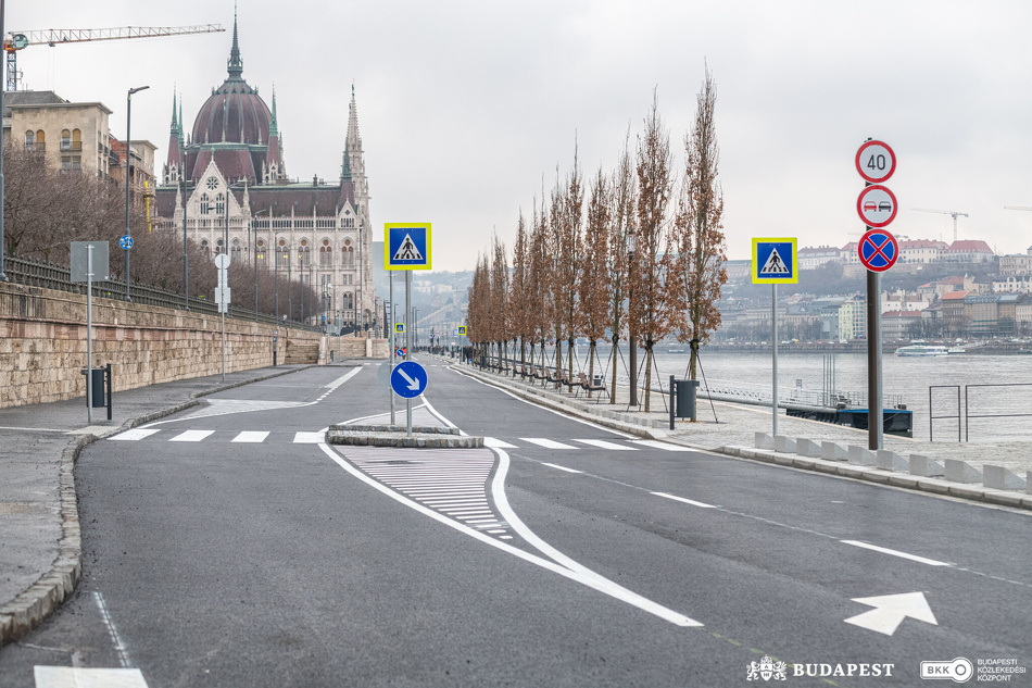 A pesti alsó rakpart Parlament és Margit híd közötti szakaszán zajló átépítések során gyalogos sétányt alakítottak ki az útpálya, valamint a Duna között, melyet mától vehetnek birtokukba a gyalogosok – tájékoztat közleményében a BKK.