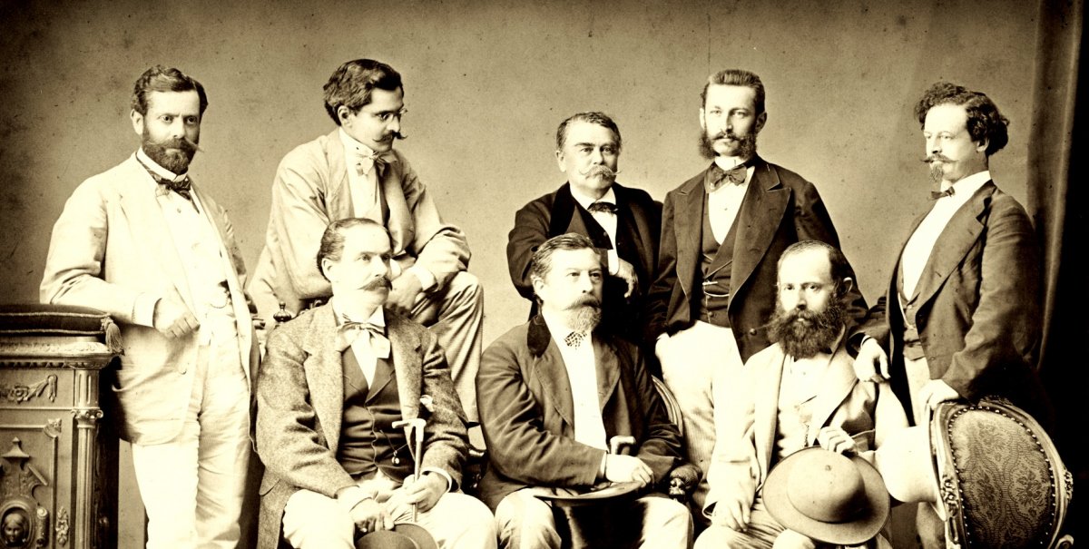 A középen ülő Ybl mellett balra Anton von Baumgarten, jobbra Weber Antal, az álló sorban pedig Wechselmann Ignác, Unger Emil, Faváry József, Ney Béla és ifjabb Koch Henrik alakját láthatjuk. Ma talán kevéssé ismerjük őket, de rávilágítanak, hogy Ybl Miklós nem elszigetelten, hanem – szellemi holdudvarával, illetve a tervezőirodájában is – kollektívában dolgozott a művészi koncepció tekintetében is egyező látásmódot képviselő tervezőkkel.