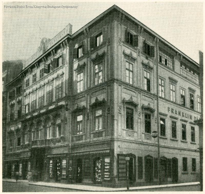 Nyitókép: A Franklin Társulat székháza és nyomdája 1929-ben az Egyetem (ma Károlyi) és a Gróf Károlyi (ma Ferenczy István) utcák sarkán (Forrás: FSZEK Budapest Gyűjtemény)
