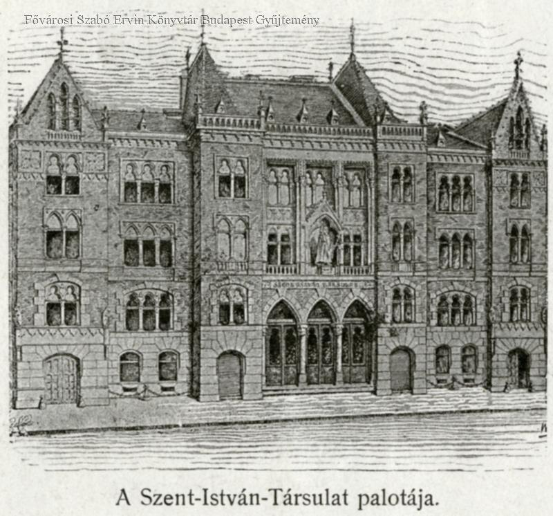 A Szentkirályi utca 28–30. szám alatt felépített historizáló stílusú új székházat 1898 decemberében adták át, amelyben egy saját nyomdát is kialakítottak. A nyomda a Stephaneum nevet kapta, amely utal a társulat névadójára, Szent István királyra, akinek szobra helyet kapott az új székház főbejárata felett is.