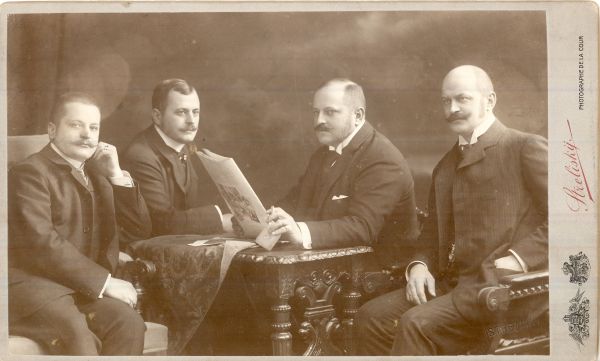 A Heinrich-cég igazgatói 1905-ben, az építtető Heinrich Ferenc balról a harmadik (Forrás: Magyar Kereskedelmi és Vendéglátóipari Múzeum)