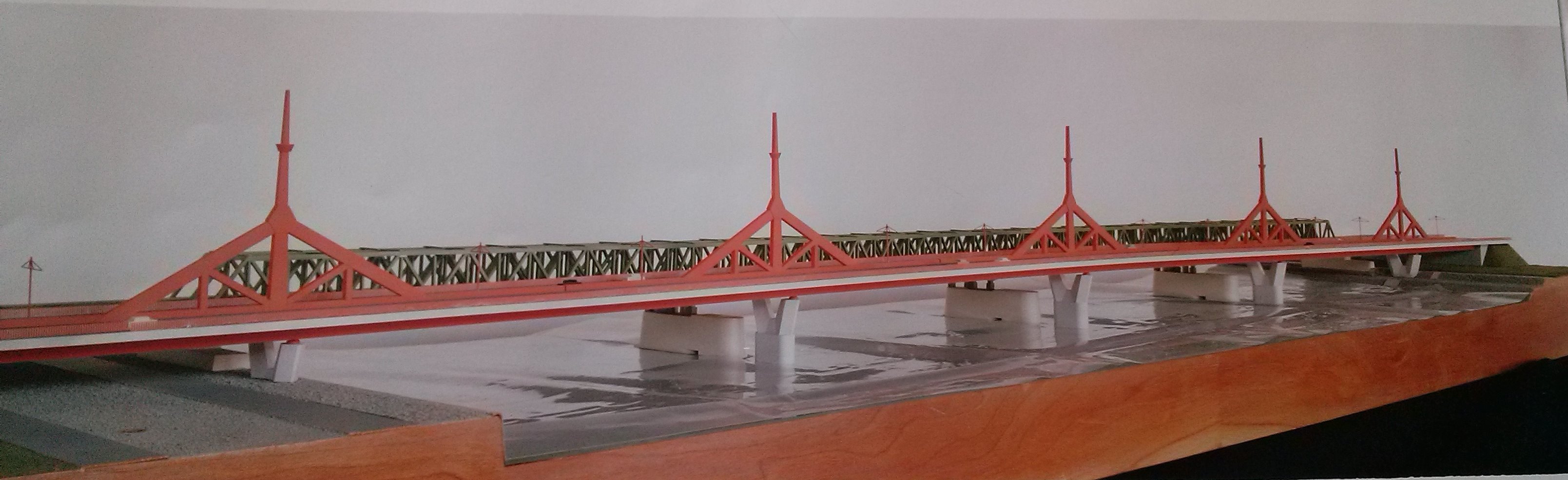 Az 1986-ban tervezett híd egy részletének makettje (Forrás: A Lágymányosi Duna-híd című kiadvány, Főmterv, 1994)