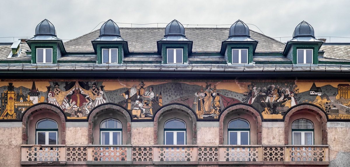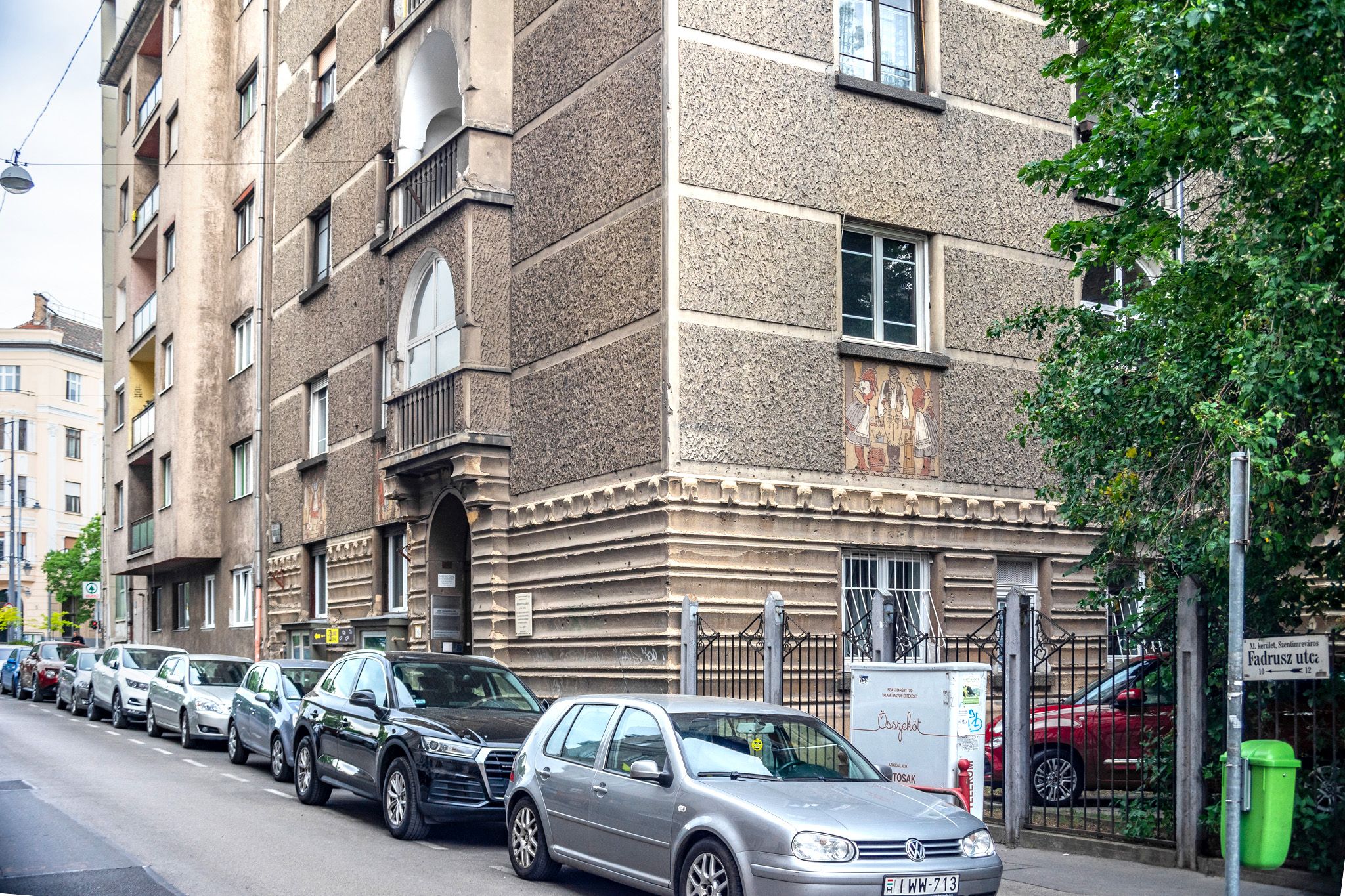 A Fadrusz utca 12. szám alatti, Nap-udvar nevet viselő bérház homlokzatát is sgraffitók díszítik (Fotó: Both Balázs/pestbuda.hu)