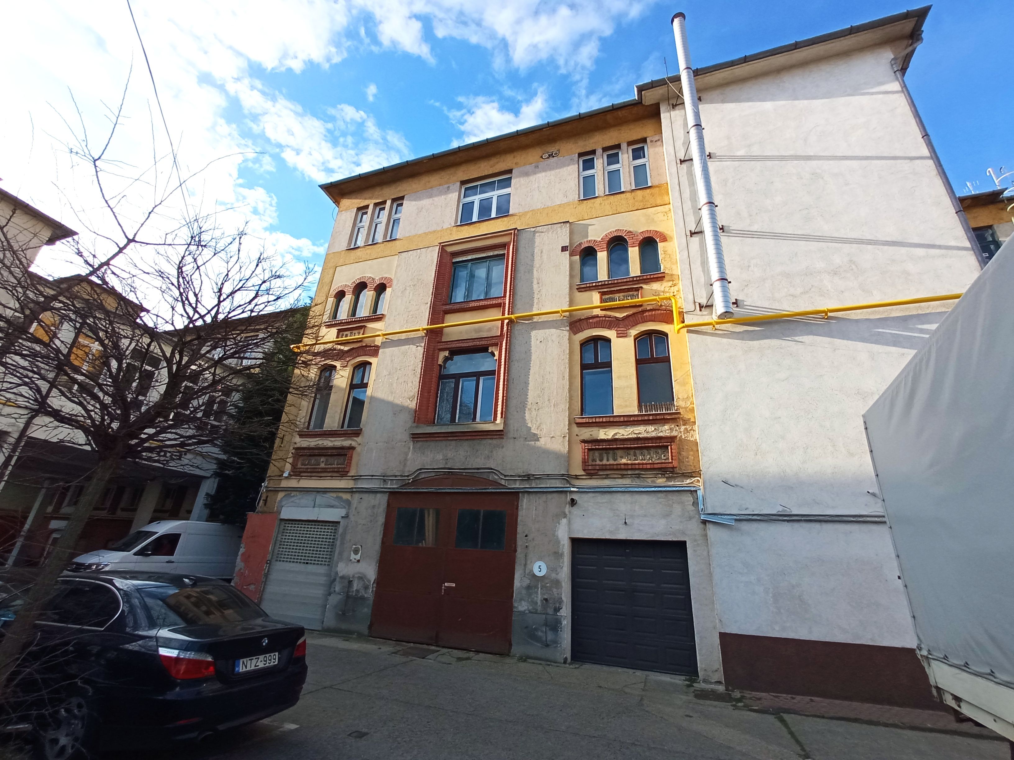 Udvarrészlet ma, a SZALMA-RAKTÁR és az AUTO GARAGE felirat most is kivehető (Fotó: Gönczi Ambrus)