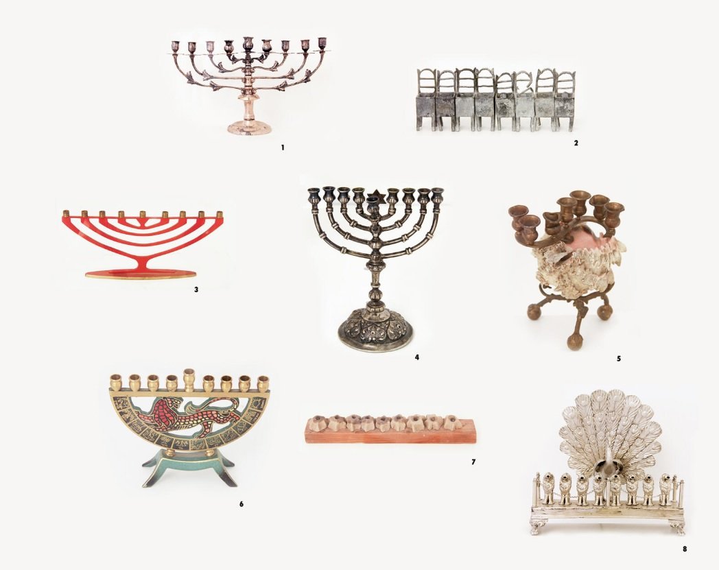 Az éppen zajló ünnep révén a Hanukával kapcsolatos tárgyakat is érdemes szemügyre venni, melyek közül a legtöbb mécsestartó. A zsidók ugyanis ekkor az olajcsodára emlékeznek: Kr. e. 164-ben három év harc után visszafoglalták a jeruzsálemi Szentélyt, de az ott álló menóra (gyertyatartó) lángra gyújtásához csak egy napra elegendő olajat találtak. Csoda történt azonban, mert ez a kis mennyiség nyolc napig égett. Ezért a következő évtől a Szentély és az oltár újraavatásának emlékére nyolcnapos ünnepet hirdettek a főpapok, ez a Hanuka. Ekkor nem a klasszikus menórát használják – aminek csak hét ága van –, hanem az úgynevezett hanukkiát, amely nyolcágú, ráadásul a mécseseket egy kilencedik segédlángról kell meggyújtani. Az évszázadok folyamán sokféle változatuk alakult ki, a kiállításban látható például egy XIX–XX. század fordulóján készült szecessziós hanukkai lámpás is, melynek hátterét egy kiterjesztett faroktollú páva adja.