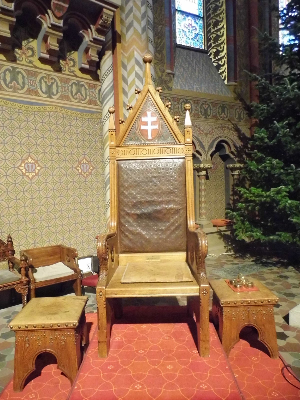 Az állandó kiállítás az emeleten, a királyi oratóriumban folytatódik, ahová egy építészeti műalkotáson, egy gótikus csigalépcsőn jutunk fel. Az oratórium tulajdonképpen egy karzat, amit az uralkodó család tagjainak tartottak fenn, és ennek megfelelően az itteni tárlat a koronázások történetére fókuszál. Láthatók azok a trónusok, amelyeken IV. Károly és felesége foglalt helyet, illetve archív fotók ábrázolják, hogy 1916. december 30-án milyen ünnepélyes köntösbe öltöztették a templomteret. Egyúttal a Koronaőrségre vonatkozó tárgyakat is elhelyeztek itt, például jellegzetes fegyverük, a vibárd egy darabját.